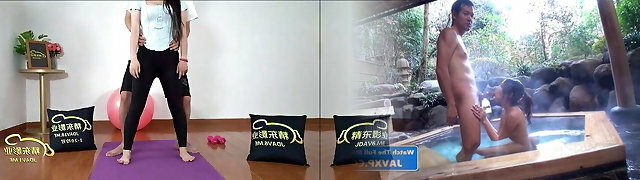 Yoga nymphos with hypnotizing rounded butts go nasty while riding dick on top