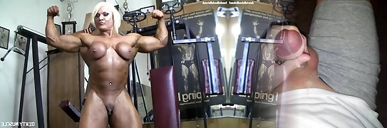 Female Bodybuilder Poses Her Big Pleasure Button In The Gym
