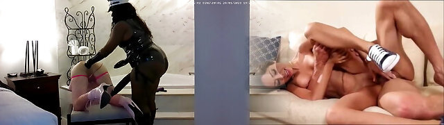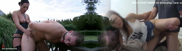 Femdom strapon pegging. Mistress fucks a slave in a chastity belt in the ass. Great strapon session