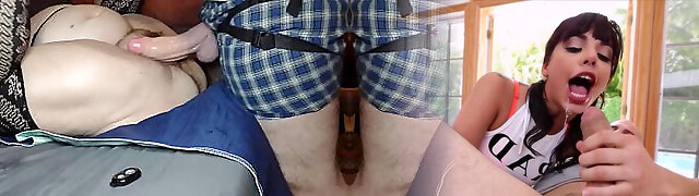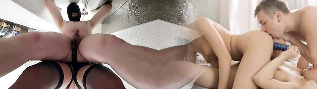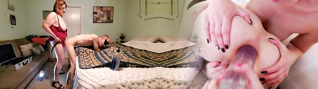Stepmom ass-fuck strapon prostate massage her stallion sperm