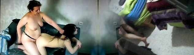 fucking my lesbian fat bbw girlfriend with a belt dick