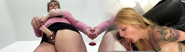 Strapon loving grannies pierce pussy and mouth of hot dame