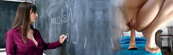 Teacher Is Student Fuck Stuff... Followed With More Lesbian Play! Then She Pummels a Cock!