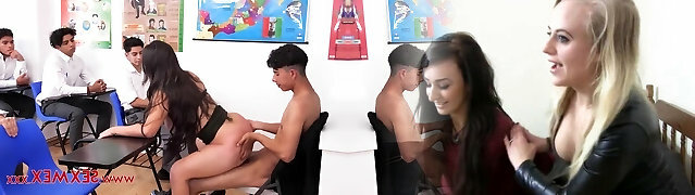 Latina MILF Savannah Watson gives some pointers to her schoolgirl