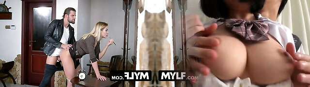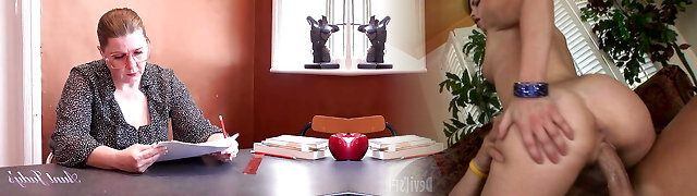Stepmom help me with my lessons. MILF romped young Daughter for bad grades