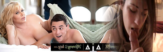 MOMMY'S BOY - Voluptuous Stepmom Karen Fisher Hides Her Stepson Under The Covers! Nearly CAUGHT!