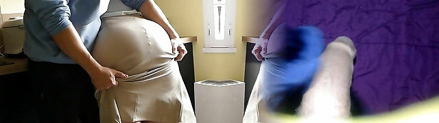 My step-mom's tight leather skirt makes her want to fuck her huge round ass!
