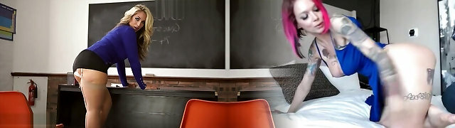 Horny and super-naughty MFF threesome with lusty Lily Lane right in the school