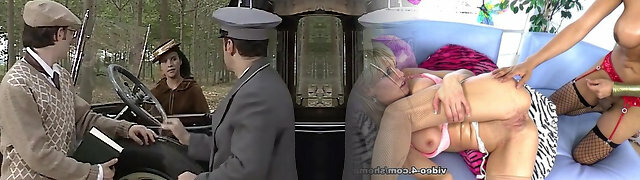 Vintage Threesome Scene Featuring Double Blowjob And Rimjob