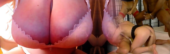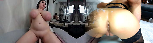 Huge hooters with tight ass babe interracial sex show