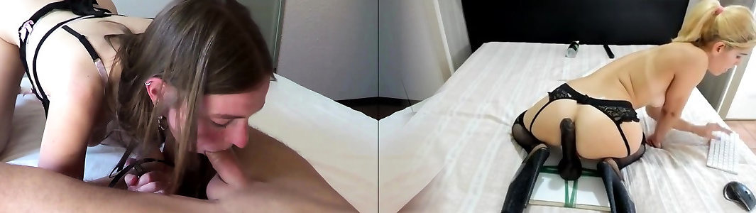 Wanton blonde sweetheart gives blow to strap on threadbare by steaming hotty