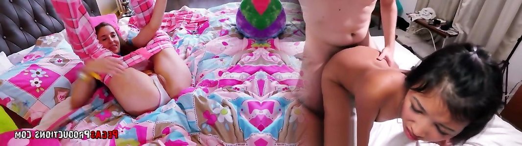 Two youthful lezzies with great hooters get drilled and facialed after hefty fuck stick have fun