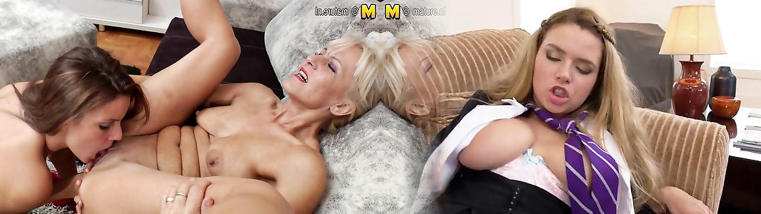 Mature moms sharing succulent light-haired daughter