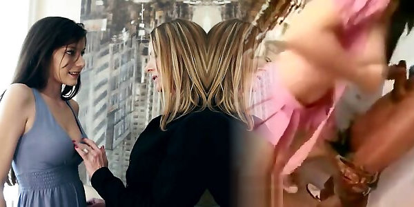 Plump, Caucasian femmes, Selah Rain and Eden Charm are having a three-way with a ebony dude