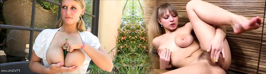 First-timer Tears Up Her Immense Globes and Cock-squeezing Labia with a Cucumber