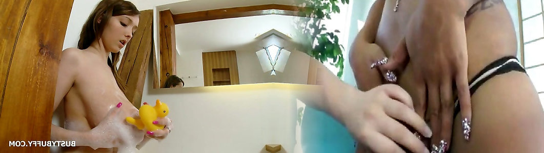 Voluptuous honey is rubbin her soapy orbs and poking her rosy pussy