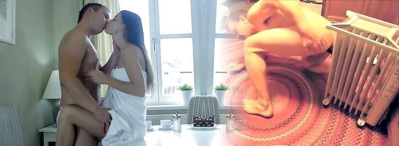 Romantic honeymoon intercourse in the cute hotel bedroom on webcam