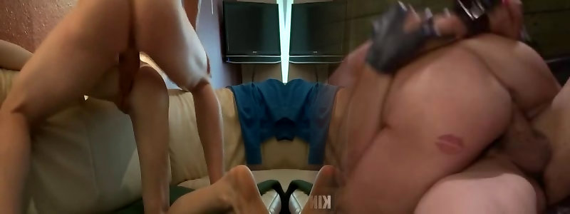 Xxl chick pulverized by a thin guy in the kitchen