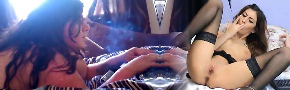 Torrid brown-haired Lacie James plays with fuck stick and smoke cigarette on web-cam