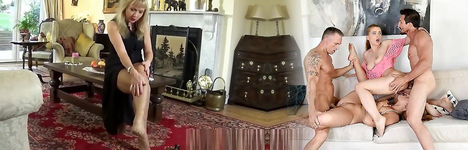 Highly stellar chicks giant mammories fetish dark-hued clothes high-heeled slippers