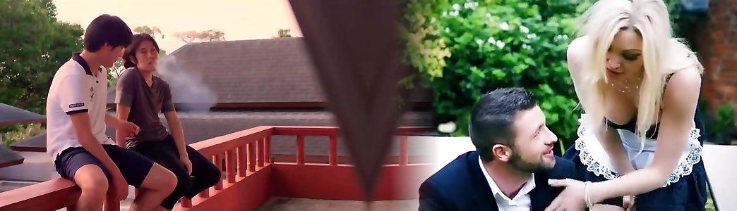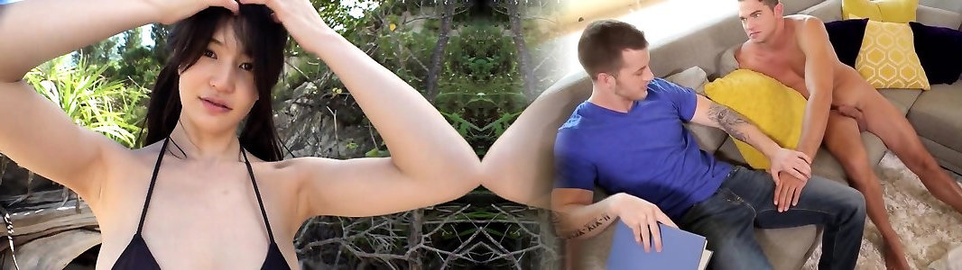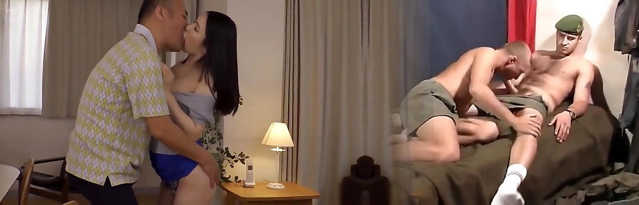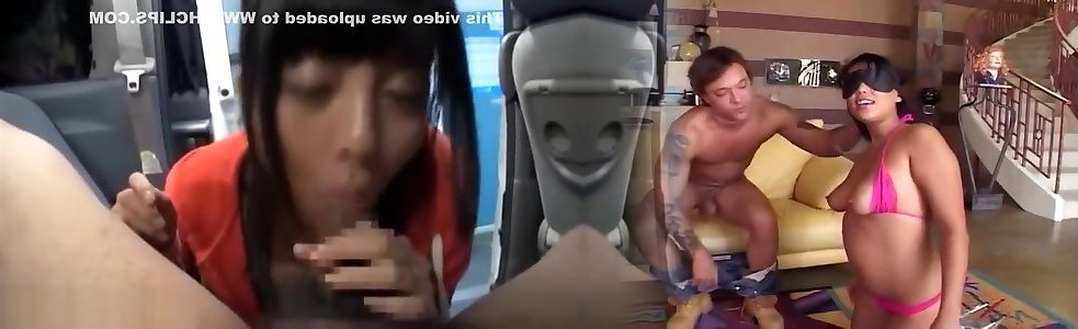 Oriental bliv with ample milk cans goes horny on 2 phat penises