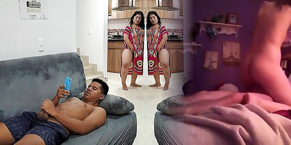 My stepmother watches me masturbate and gets horny, caresses her pussy too