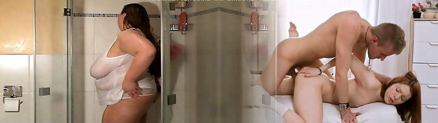 Stepmom shares a shower with stepson