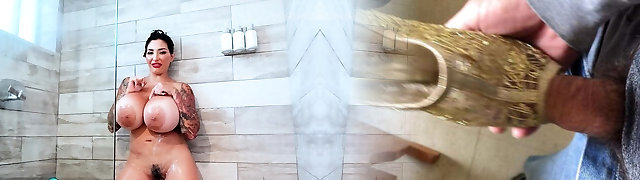 Yam-sized busty hairy wife in the shower
