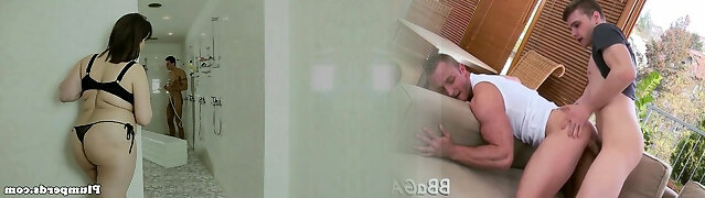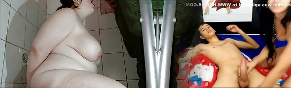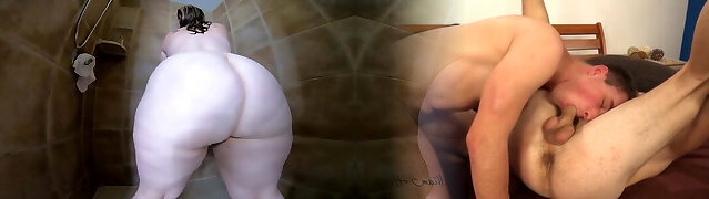 My Girlfriend mom sucks my big cock while I'm pisses in douche then Hughes cums inside her ginormous ass - Anal sex