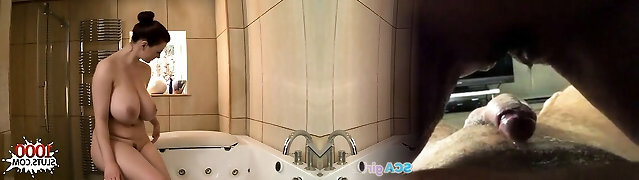 Big boobs pregnant girl take a bath with her husband