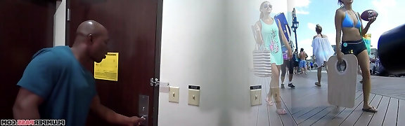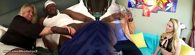Slutty blonde enjoys a phat black cock as her cuckold strokes