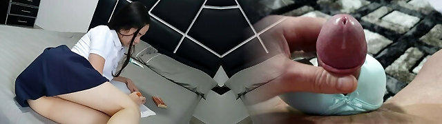College Girl fucks her stepbrother while studying