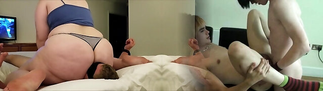 Obese bootylicious babes facesits on guy