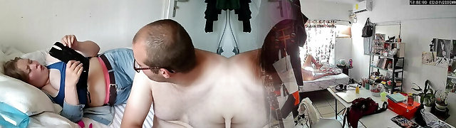 My mate's stepbrother's freak enters the room and fucks me silently... I hope he doesn't hear me