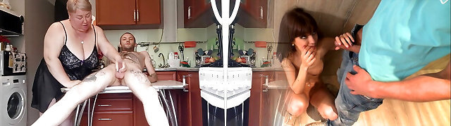 I'm sitting on the kitchen table and my mommy-in-law masturbates my dick