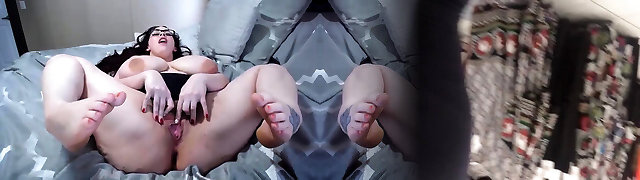 Cute Barefoot Busty Plumper Babe Wanks-off With Her Sex Fucktoy