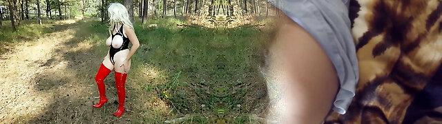 The exhibitionist man saw a lonely girl in nature and took out his dinky in front of her and began to masturbate the dinky in front unfamiliar beauty, he risks scaring her, but she likes to look at a fat male lollipop and wants to watch his pop-shot
