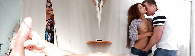 The son approached his stepmother and showed her his aroused cock, she is shocked but she likes it and she wants to masturbate him