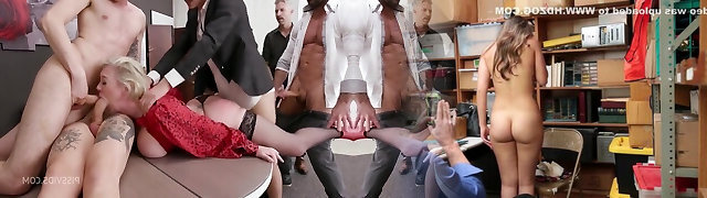 Fat Light-haired Star Staxx Is Gang Banged by Five Well Hung Guys