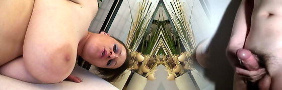POV sex with a horny big boobed MILF in cowgirl position! I spunk inside her unprotected pussy - White Mari