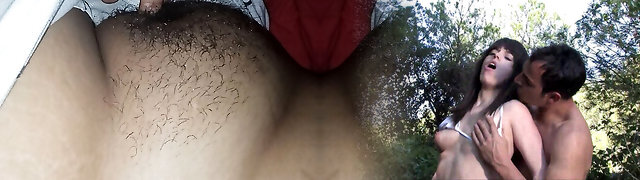 Very big natural tits and hairy cooch have good sex