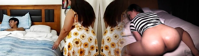 Latina Stepmom Shares Her Bed with Slender Stepson Seduced by her Thick Ass