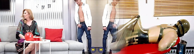 Ginormous mommy gets her pussy nailed by her two young sonnies