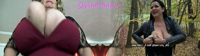 To seduce her neighbor horny MILFie fatty flashes her giant saggers