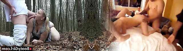 Booty Young Girlfriend Blowjob and Fuck in Woods!