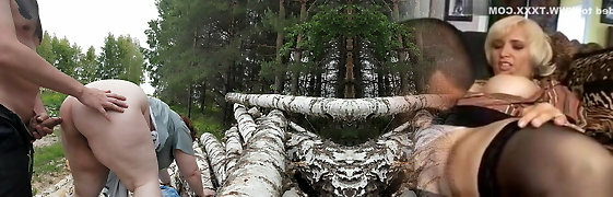 A group of horny German ladies getting fucked by some rock hard meatpipe outdoors