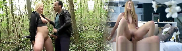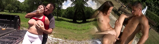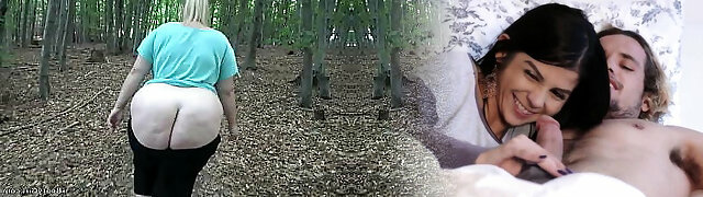 Young round girl with nice curves sucks and fucks boyfriend in the forest