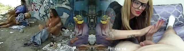 Slut in an overpass. Winter and summer. Butt plug and sucky-sucky