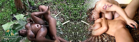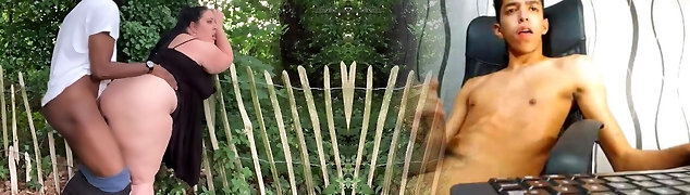 Jiggly Caribbean bbw milf fucks young n. in forest