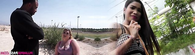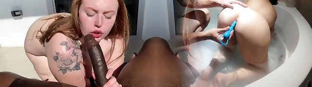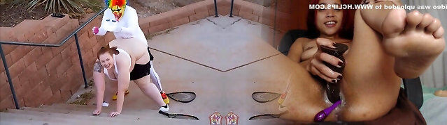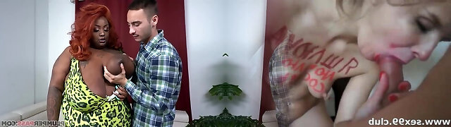 Hot plumpy slut with a fat ass attempts to handle extremely big black dick in her mouth and labia